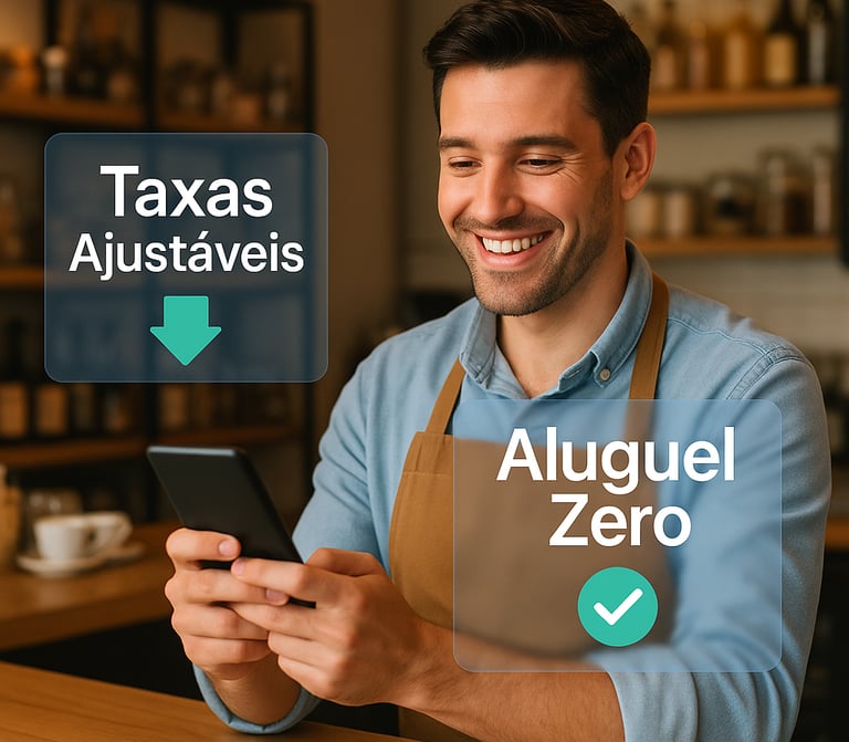Pague menos com taxas personalizadas e isenção de aluguel conforme o volume.